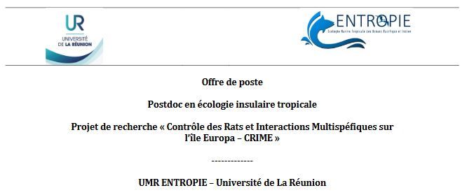 L'offre complète est disponible ici : https://umr-entropie.ird.nc/index.php/home/equipe/recrutements/offre-de-post-doc-en-ecologie-inculaire-tropicale